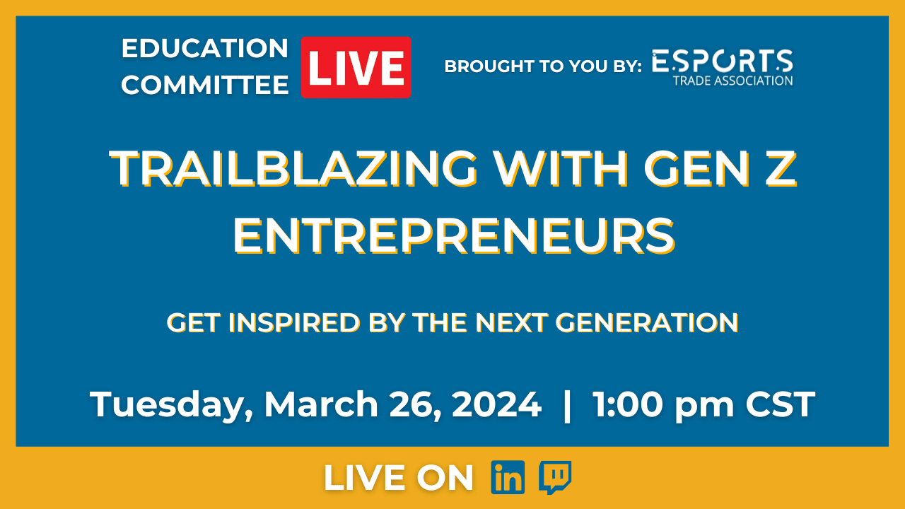 Join Host, Nik Turner, and Panelists: George Lewin, Will Holman, Ben Gregg, and Travis Smith as we explore how teenagers are revolutionizing the esports industry by launching their own organizations and transforming them into thriving ventures. Discover the inspiring stories of young entrepreneurs shaping the future of gaming!