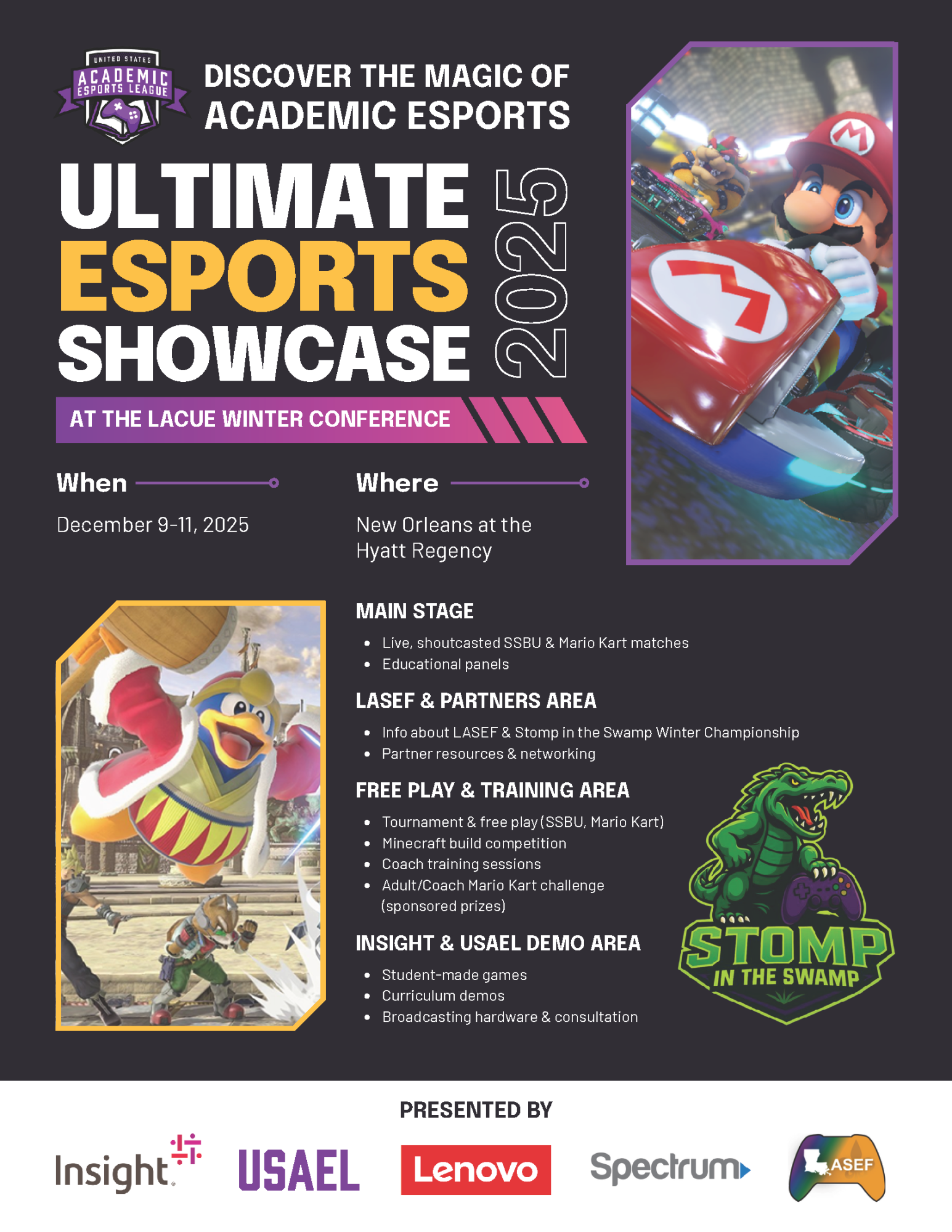 We are excited to invite everyone to the Ultimate Esports Showcase happening December 9–11, 2025, live at the LACUE Winter Conference inside the Hyatt Regency.